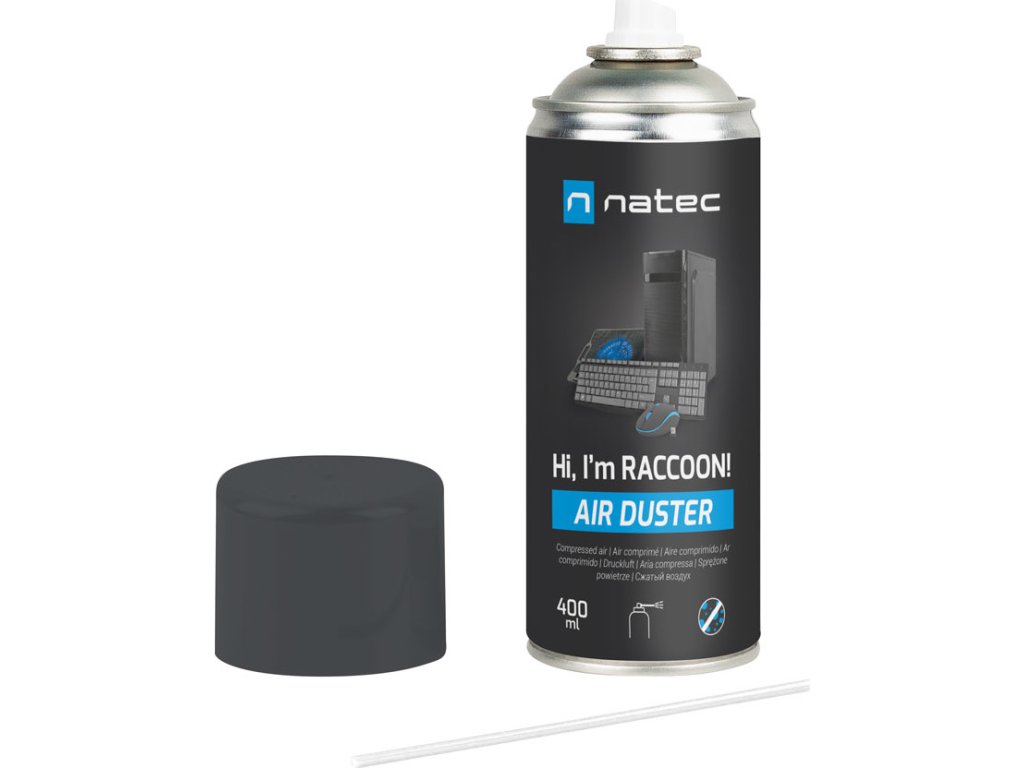 Natec Raccoon 400 ml je čistič stlačeného vzduchu, který vám pomůže zbavit se nečistot uvnitř i vně elektroniky. Počítačové příslušenství, kancelářské vybavení - nezáleží na tom, jak těžko dostupné jsou nečistoty, přiložená trubice vám umožní nasměrovat proud vzduchu tak, abyste je odstranili během chvilky.