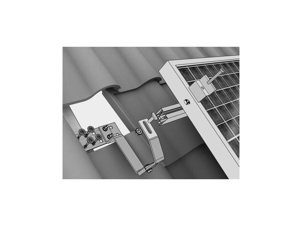 Výškově nastavitelný střešní hák z nerezu A2. Lze nastavit hloubku krytiny pomocí podložek tl. 5mm. a také lze nastavit vzdálenost profilu nad krytinou v rozmezí 105 - 140 mm. Drážka 10 mm pro přesné seřízení pozice profilu v rozmezí 40 mm. Tloušťka materiálu 5 mm.