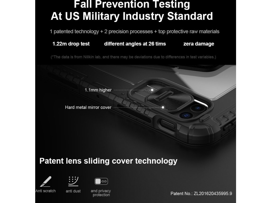 Kryt se skládá z TPU + PU materiálu, který chrání váš tablet před poškozením. Navíc je opatřen zesílenými rohy a posuvným krytem fotoaparátu pro ještě větší ochranu.