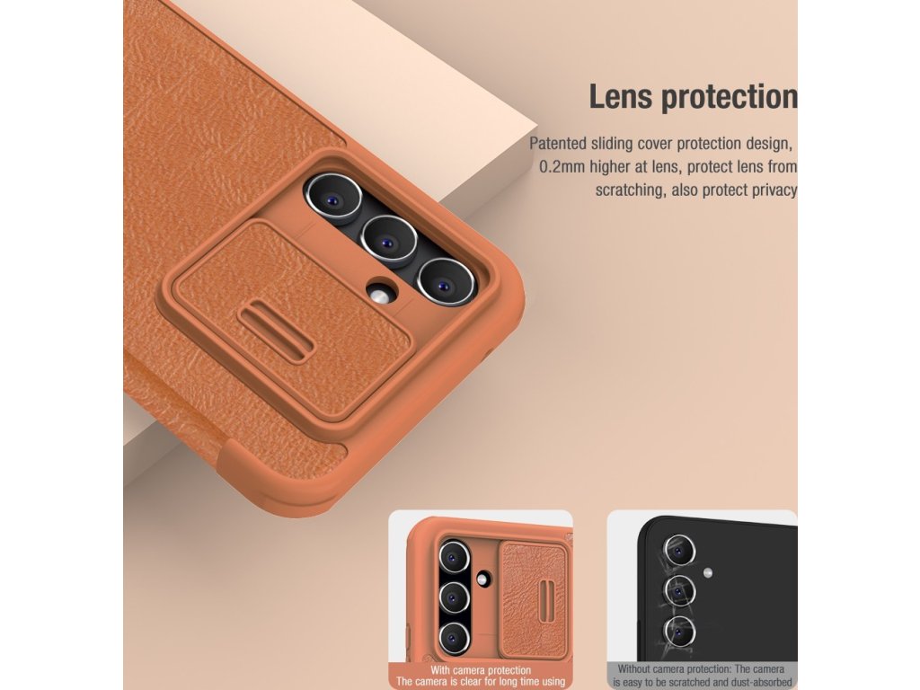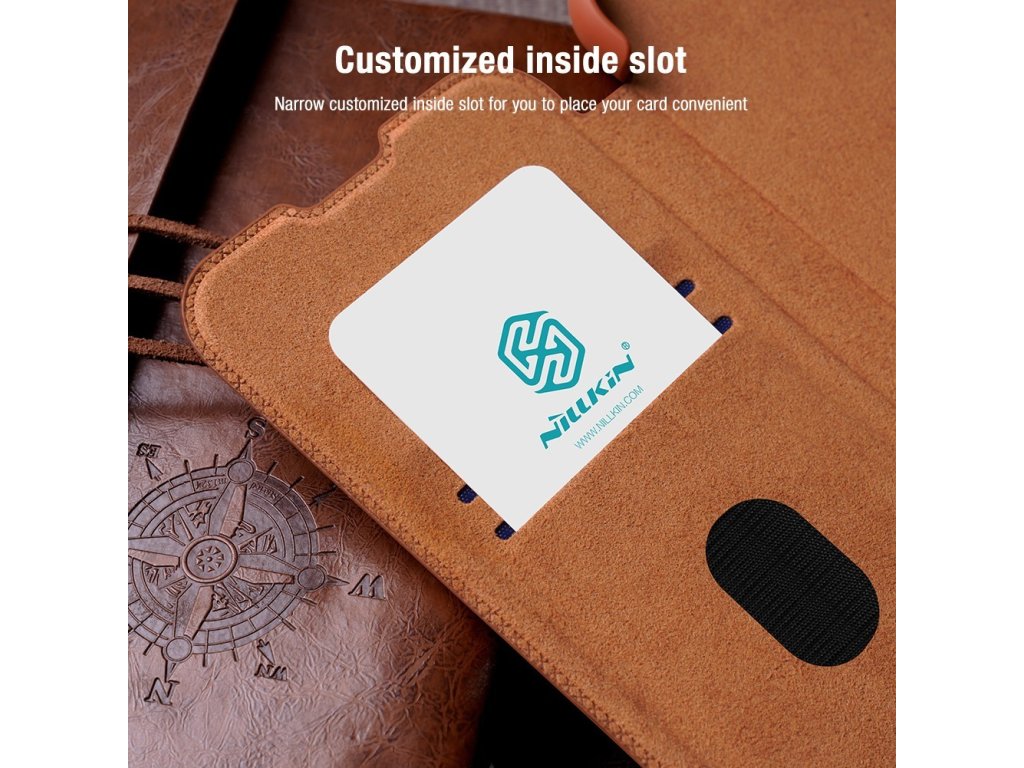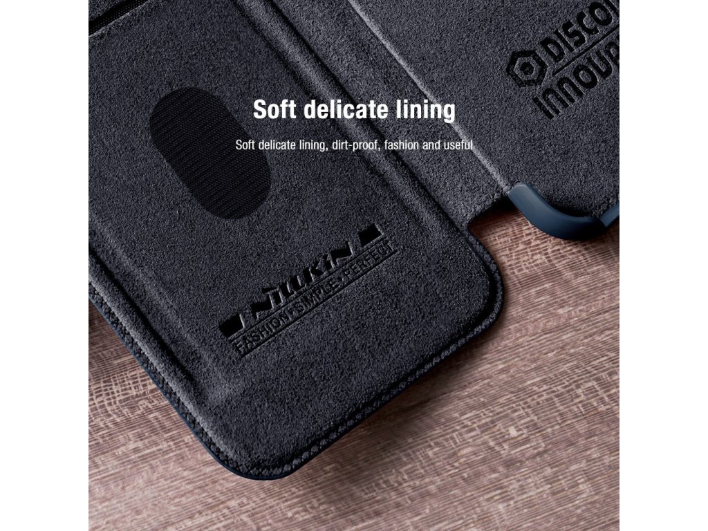 Nillkin QIN Book PRO pouzdro je vyrobeno z kvalitní PU kůže, otevírá se do boku jako knížka a navíc je oproti klasickému QIN Book vybaveno posuvným krytem čoček fotoaparátu.