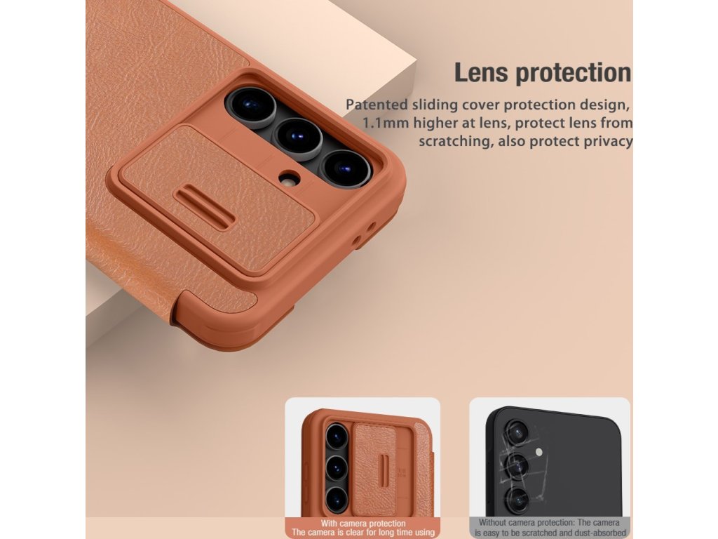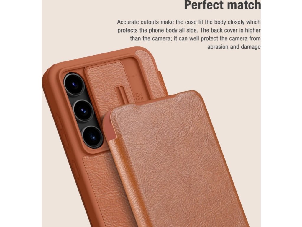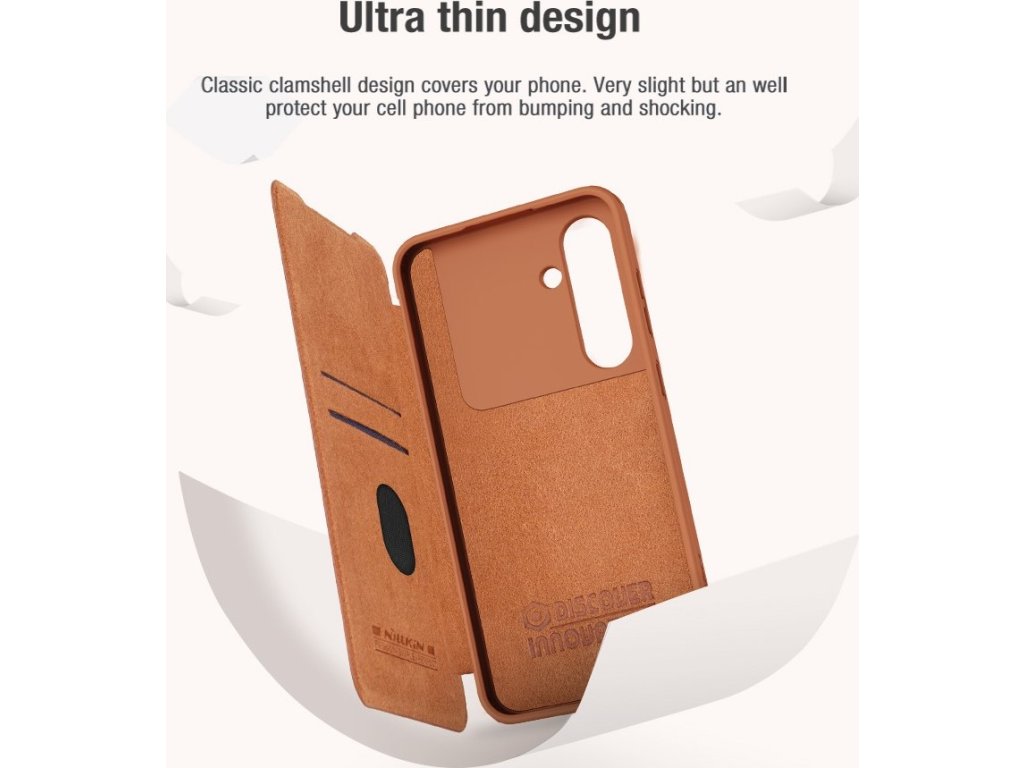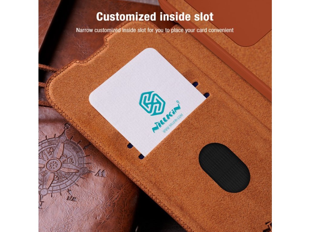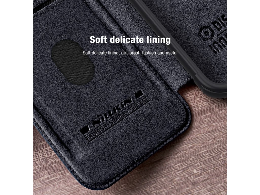 Nillkin QIN Book PRO pouzdro je vyrobeno z kvalitní PU kůže, otevírá se do boku jako knížka a navíc je oproti klasickému QIN Book vybaveno posuvným krytem čoček fotoaparátu.