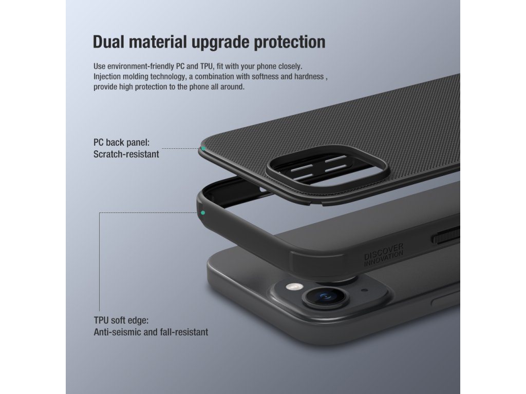 Skládá se z tvrdého a odolného plastu na zadní straně a TPU měkkého plastu na bocích.
