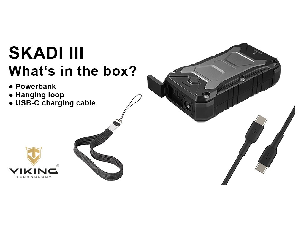 S naší outdoorovou powerbankou Viking SKADI III můžete být vždy připraveni na všechny výzvy, které vám příroda může přinést. Nezáleží na tom, jak náročné jsou podmínky, tato powerbanka vám poskytne potřebnou energii a spolehlivost, kterou potřebujete, abyste mohli být napojení na svět, kdekoliv se nacházíte.