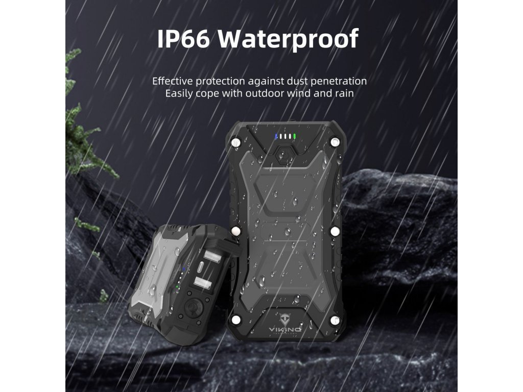 Outdoorová powerbanka Viking SKADI III je vyrobena z odolného materiálu (ABS+PC), který snese náročné podmínky v přírodě. Voděodolné (IP66) a nárazuvzdorné (SHOCKPROOF) provedení znamená, že ji můžete bezpečně používat při turistice, kempování, horolezectví nebo jiných aktivitách. Navíc vám outdoorová powerbanka Viking SKADI III nabídne dostatek energie pro vaše nejpotřebnější zařízení, jako jsou například GPS navigace, kapesní lampy, nebo nabití vašeho smartphonu v nouzi.