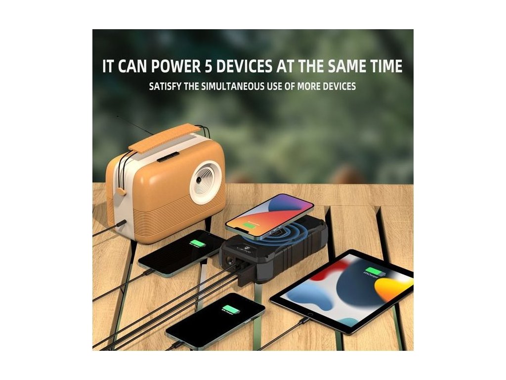 Díky podpoře rychlonabíjení PD60W nemusíte zbytečně dlouho čekat na plné nabití powerbanky a můžete rovnou vyrazit za dobrodružstvím. Rychlé nabíjení podporují také výstupní porty USB-A a USB-C s výkonem až PD65W. Díky výstupnímu DC jack 2251 portu můžete připojit i notebook. S tímto výkonným zdrojem energie budete mít vždy dostatek elektrického výkonu, abyste udrželi svá zařízení v provozu.?? Wireless bezdrátové nabíjení 15W se vám zase může hodit, pokud se ocitnete v situaci bez kabelu.