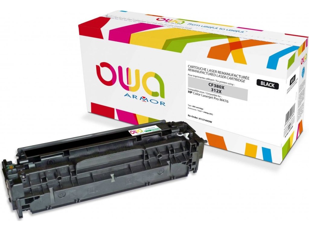 Černý laserový toner značky OWA Armor s kapacitou 4 400 stran kompatibilní s tiskárnu HP LJ M476.