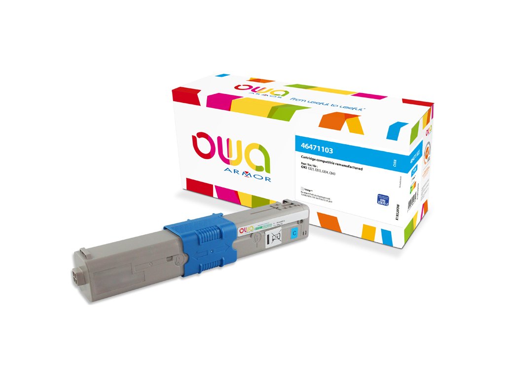 OWA Armor laser toner pro OKI C823/833, 7000 stran, modrá, kompatibilní s 46471103.