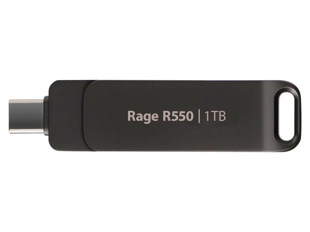 Patriot Rage R550 1 TBUSB flash disk s duálním rozhraním USB 3.2 Gen1 a USB-C. Nabízí velikost paměti 1 TB a rychlost čtení až 100 MB/s. Disponuje praktickým mechanismem, který chrání konektory před nechtěným poškozením. Potěší také otvor na klíče, aby bylo možné flash disk zavěsit na kroužek a vzít si jej kamkoliv s sebou.