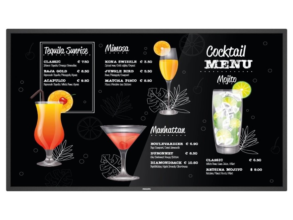 Odolný displej pro digitální prezentace Philips P-Line byl vytvořen pro nepřetržitý provoz a obstojí i při zkoušce časem. Čistý obraz v rozlišení UHD a vysoký jas dělají z tohoto displeje perfektní zařízení do náročného prostředí, jako jsou obchody, dopravní prostředky a prostory občerstvovacích služeb.