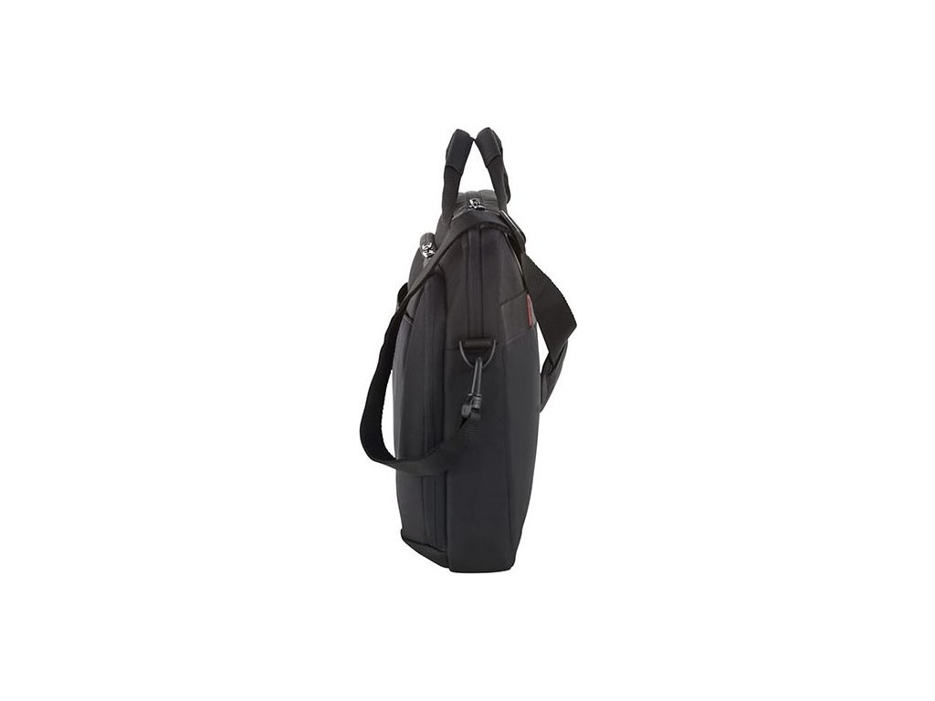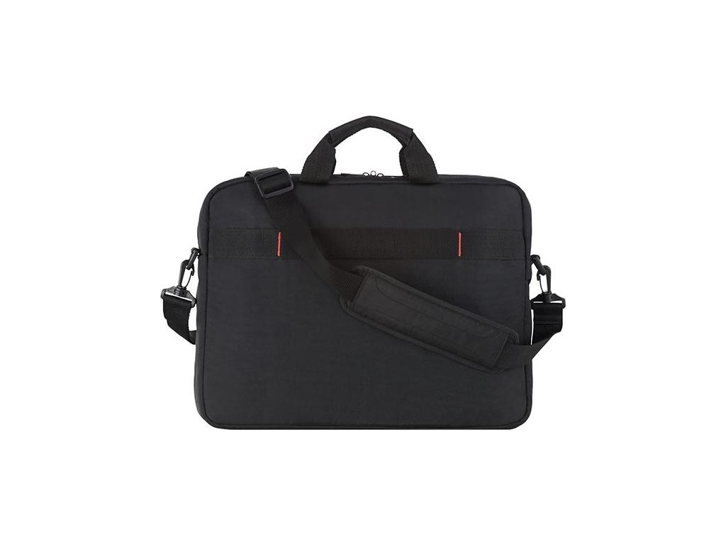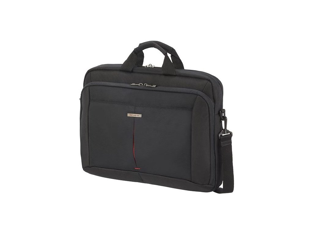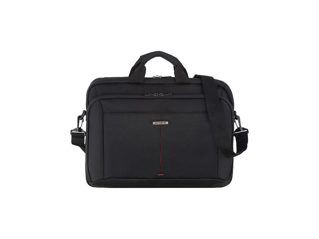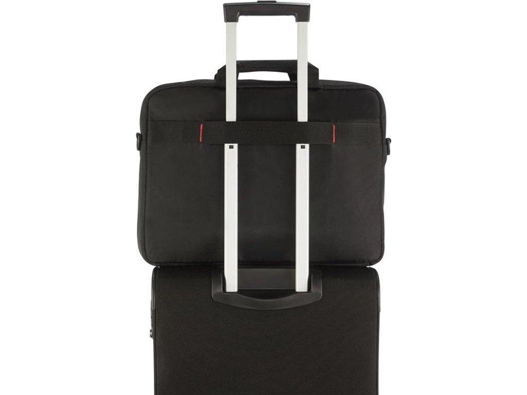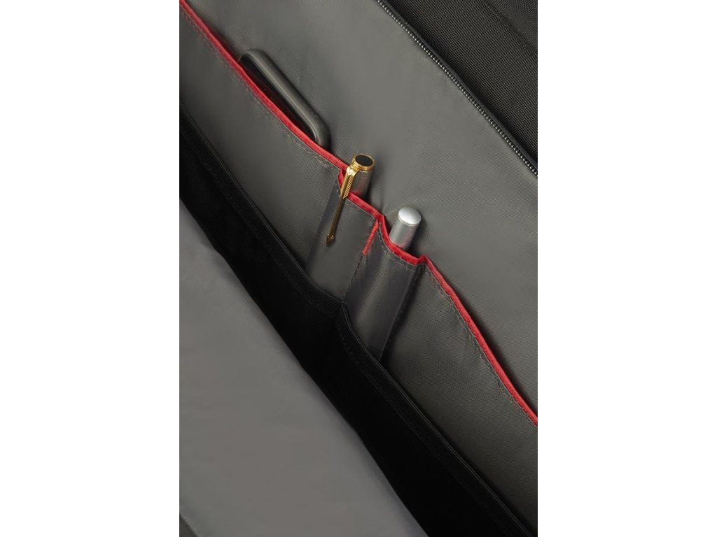 Brašna na notebook Samsonite Bailhandle 17,3" z kolekce Guardit 2 má z přední strany dvě samostatné kapsy na zip, z toho jednu s organizérem. V hlavní části je polstrovaná přihrádka na notebook s páskem na připevnění, přihrádka na tablet a kapsa např. na dokumenty (A4). Brašna má nastavitelný odnímatelný popruh na rameno a navlékací pásek sloužící ke snadnému připevnění na rukojeť kufru.