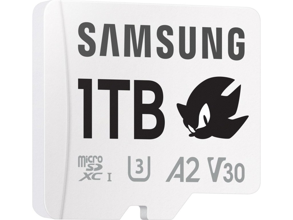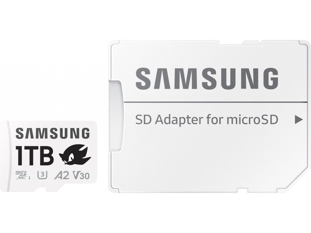 Samsung PRO Plus Sonic the Hedgehog microSDXC 1TB + SD adaptérPaměťová karta formátu Micro SDXC nabízí kapacitu 1 TB. Disponuje rychlostí čtení až 180 MB/s a rychlostí zápisu až 130 MB/s. Samozřejmostí je pak odolnost vůči vodě, nárazům, extrémním teplotám, magnetům i rentgenovému záření. Součástí balení je SD adaptér.