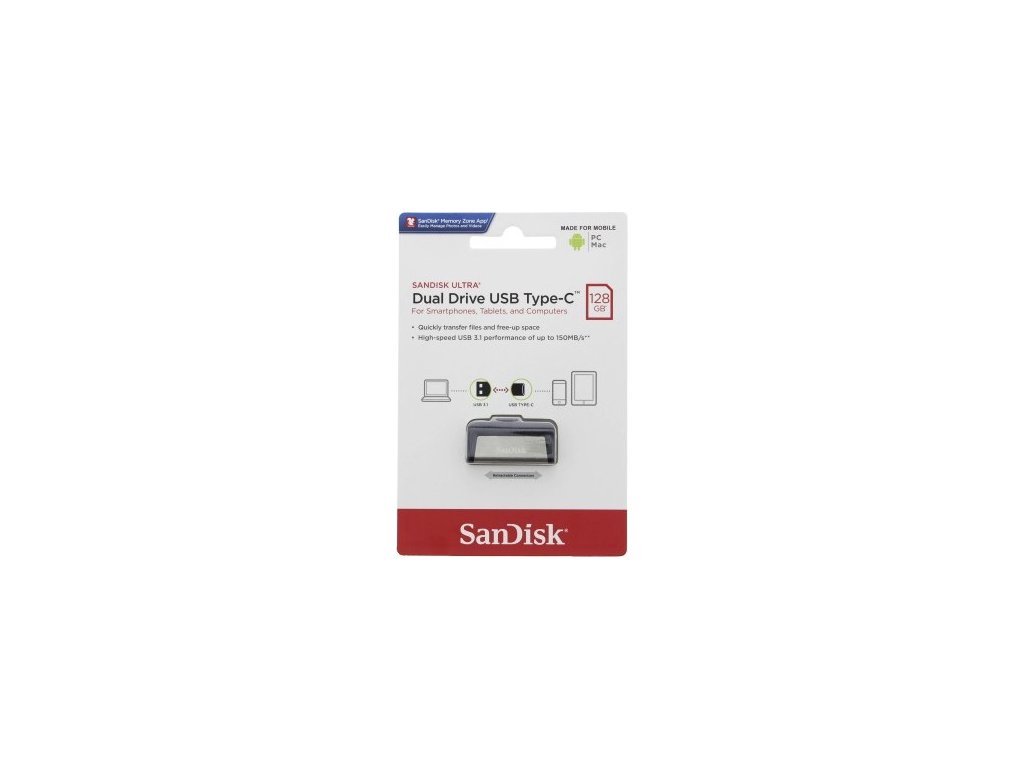 SanDisk Ultra Dual USB-C Drive 128GB / USB 3.0 Typ-C / USB 3.0 Typ-A / stříbrný