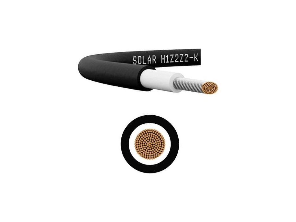 Solární jednožilový kabel s dvojitou izolací, černé barvy pro záporný pól a průřezem 6 mm2 je určený pro venkovní použití na DC straně fotovoltaických systémů a to na propojení měničů a solárních panelů. Kabel je odmotáván na míru podle přání zákazníka, z cívky o délce 500 m.