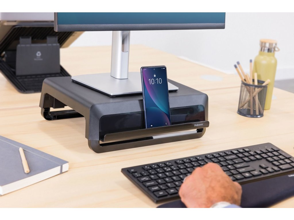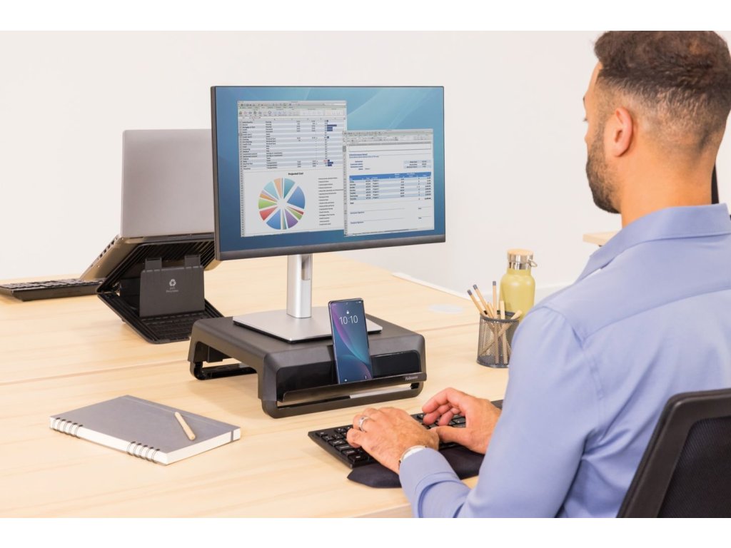Používáním stojanu pod monitor Fellowes BREYTA předcházíte bolesti šíje a krční páteře. Umožňuje nastavení monitoru na úroveň očí, čím zmírňuje svalové napětí ramen a krku. Vhodné do kanceláře i domácnosti. Určen pro všechny typy monitorů či LCD / TFT monitorů do hmotnosti do 15 kg.