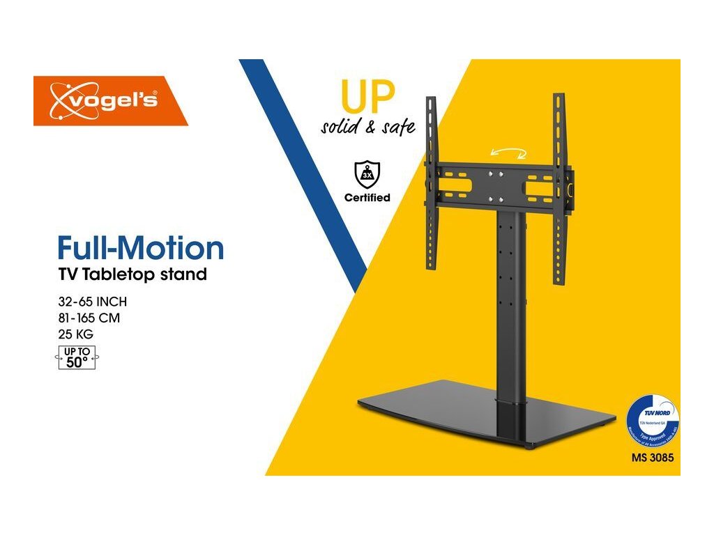 Stolní stojan z řady UP splňuje přísné bezpečnostní požadavky společnosti Vogel's. To znamená, že unese minimálně trojnásobek maximální doporučené hmotnosti televizoru. Navíc funguje výborně i po 5 000 otočeních. I při nárazu zůstává tento stojan ve vzpřímené poloze a nepřevrátí se. Spolehlivý stojan, který vám bude sloužit po dlouhá léta.