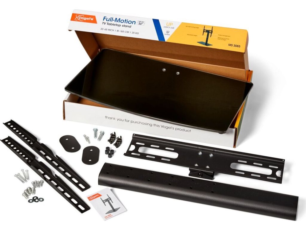 Montáž televizoru na požadované místo bez vrtání? I to je možné! MS 3085 je robustní stolní stojan na televizor, který lze umístit na skříňku nebo jiný nábytek. Televizor s úhlopříčkou od 32 do 65 palců a hmotností až 25 kg postavíte během chvilky.