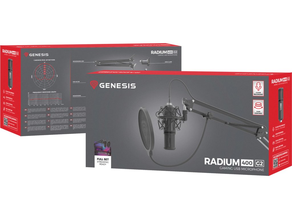 Použijte Genesis Radium 400 G2 a zlepšete kvalitu svého zvuku. A to nejen díky širší frekvenční odezvě, ale také díky vyšší citlivosti. Co to znamená? Detailní a přirozenější sdělení. Ať už mikrofon používáte k rozhovorům s přáteli nebo k živému vysílání, s mikrofonem Genesis Radium 400 G2 budete znít stejně profesionálně jako kdykoli předtím.
