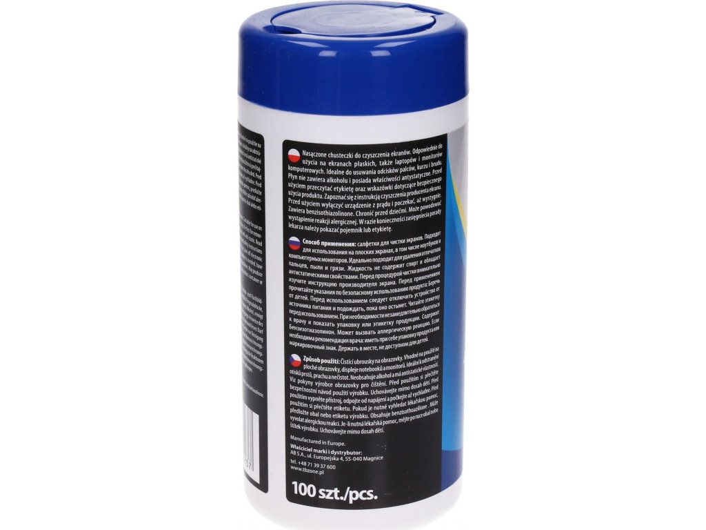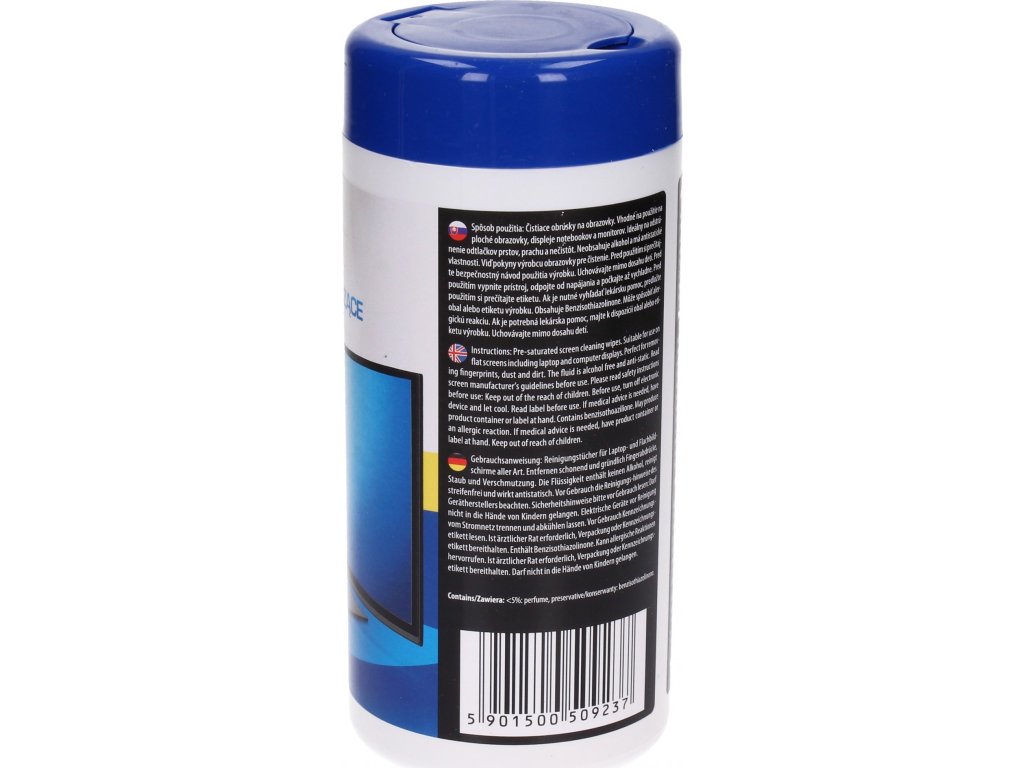Vlhčené utěrky pro čištění obrazovky. Vhodné pro použití na plochých obrazovkách včetně přenosných a počítačových displejů. Perfektní pro odstranění otisků prstů, prachu a nečistot. Tekutina je antistatická a bez obsahu alkoholu.