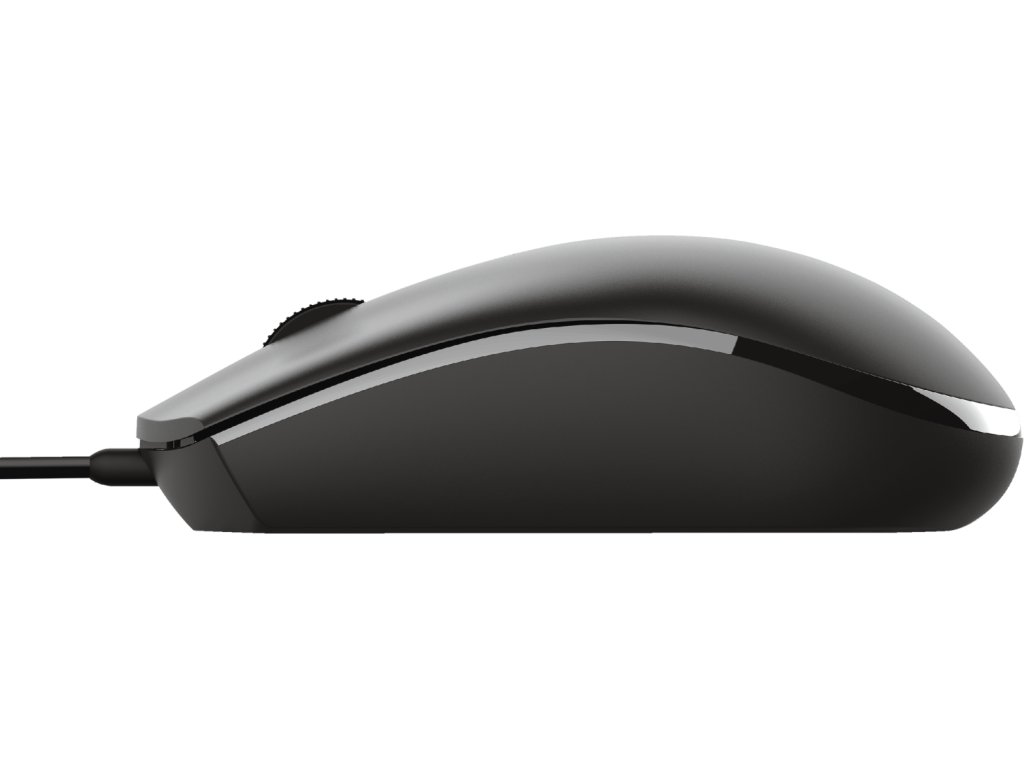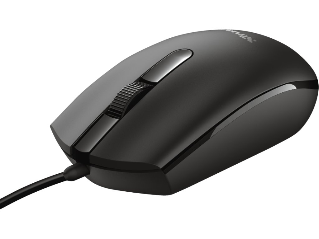 Trust Basi Wired Mouse. Snadno použitelná myš pro leváky i praváky. Tato pohodlná oboustranná myš USB je vytvořena s ohledem na jednu věc: máte práci, takže potřebujete vybavení, které právě funguje. Trust Basi používá 3 tlačítka myši, z nichž jedno je integrováno do texturního rolovacího kolečka. Vše, co potřebujete k práci. A díky optickému senzoru, který používá rozlišení 1200 DPI, funguje téměř na jakémkoli povrchu. Bez ohledu na to, kde jste, jednoduše zapojte Basi a dokončete práci.