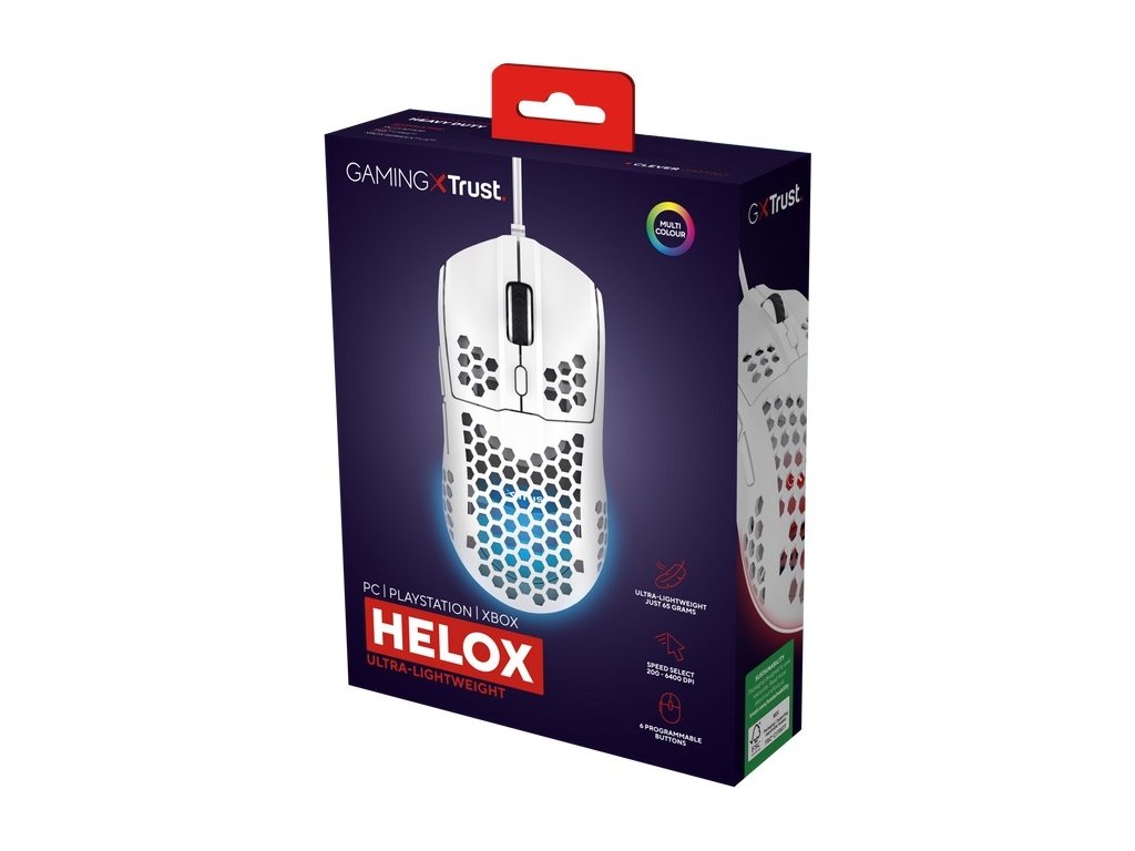 Trust Gaming GXT 928W Helox/Herní/Optická/Pro praváky/6 400 DPI/Drátová USB/Bílá