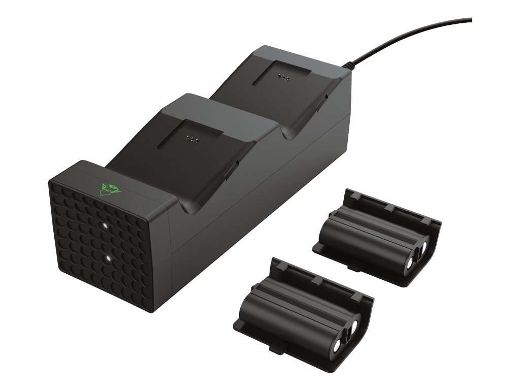 Trust GXT 250 Duo Charging Dock pro Xbox Series X/S. Nabíjejte až dva původní herní ovladače současně, obsahuje dvě dobíjecí baterie.