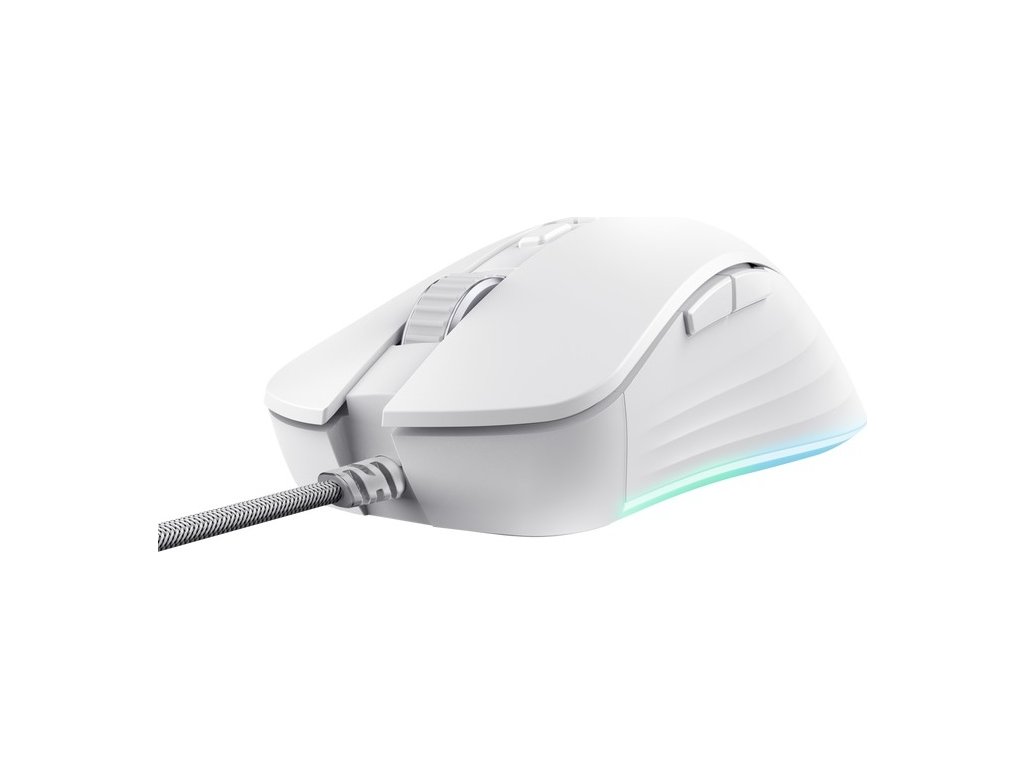 Trust GXT924W YBAR+/Herní/Optická/Pro praváky/25 600 DPI/Drátová USB/Bílá
