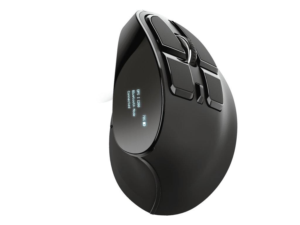 Bezdrátová dobíjecí myš s digitálním displejem a ergonomickým svislým designem pro optimální pohodlí. Přestaňte namáhat zápěstí během dlouhých pracovních dnů. Díky bezdrátové dobíjecí ergonomické myši Trust Vox budete pokračovat v práci tak dlouho, jak budete chtít. Vertikální tvar této ergonomické myši snižuje namáhání zápěstí a paží, zatímco nastavitelná tlačítka a nabídka displeje LED vám pomohou zlepšit pracovní postup.