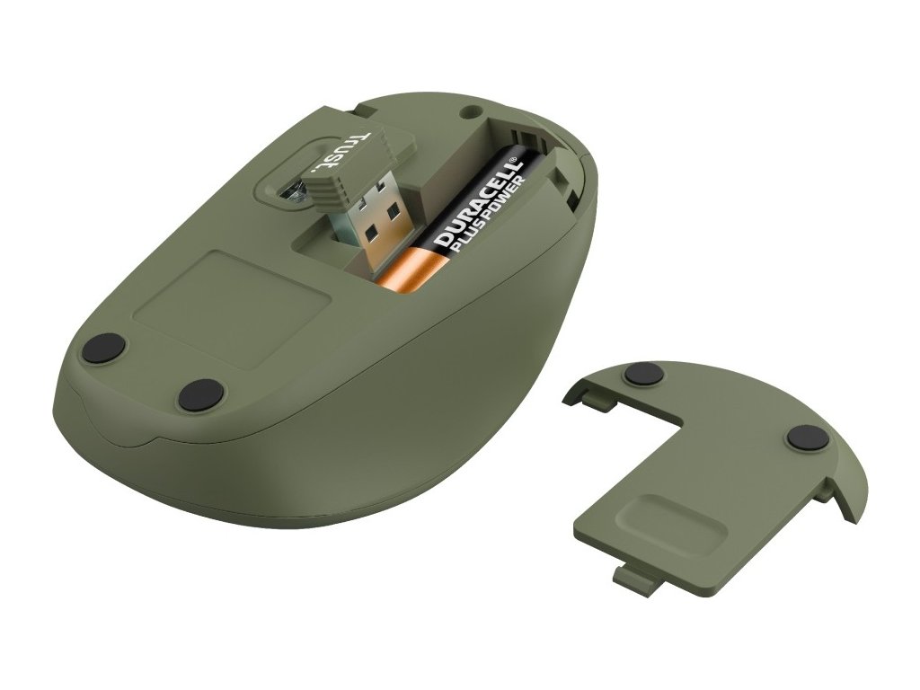 TRUST YVI+/Kancelářská/Optická/Pro praváky/1 600 DPI/Bezdrátová USB/Zelená