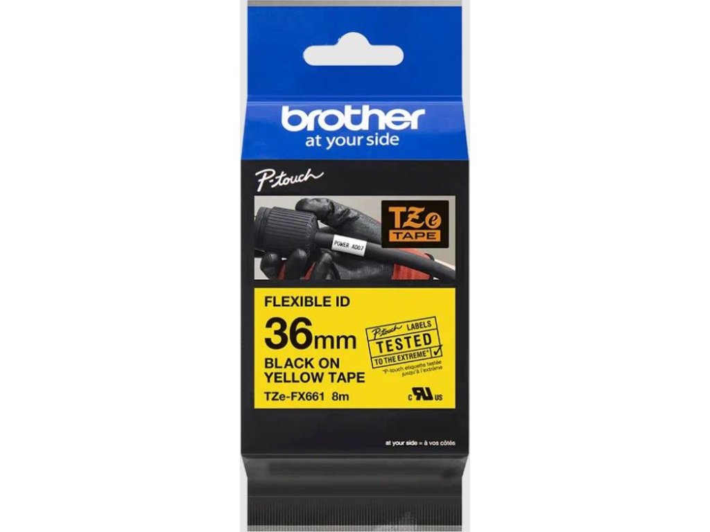 Ideální pro vytváření identifikačních štítků pro kabely, vodiče, PVC trubky nebo jiné válcovité tvary. Speciální lepidlo pásky Brother TZe-FX661 s černým tiskem na žlutém podkladu zajišťuje, že vaše důležité štítky budou mít dlouhou životnost. Kompatibilní s tiskárnami štítků P-touch, které mají logo TZ nebo TZe na krytu kazety s páskou.