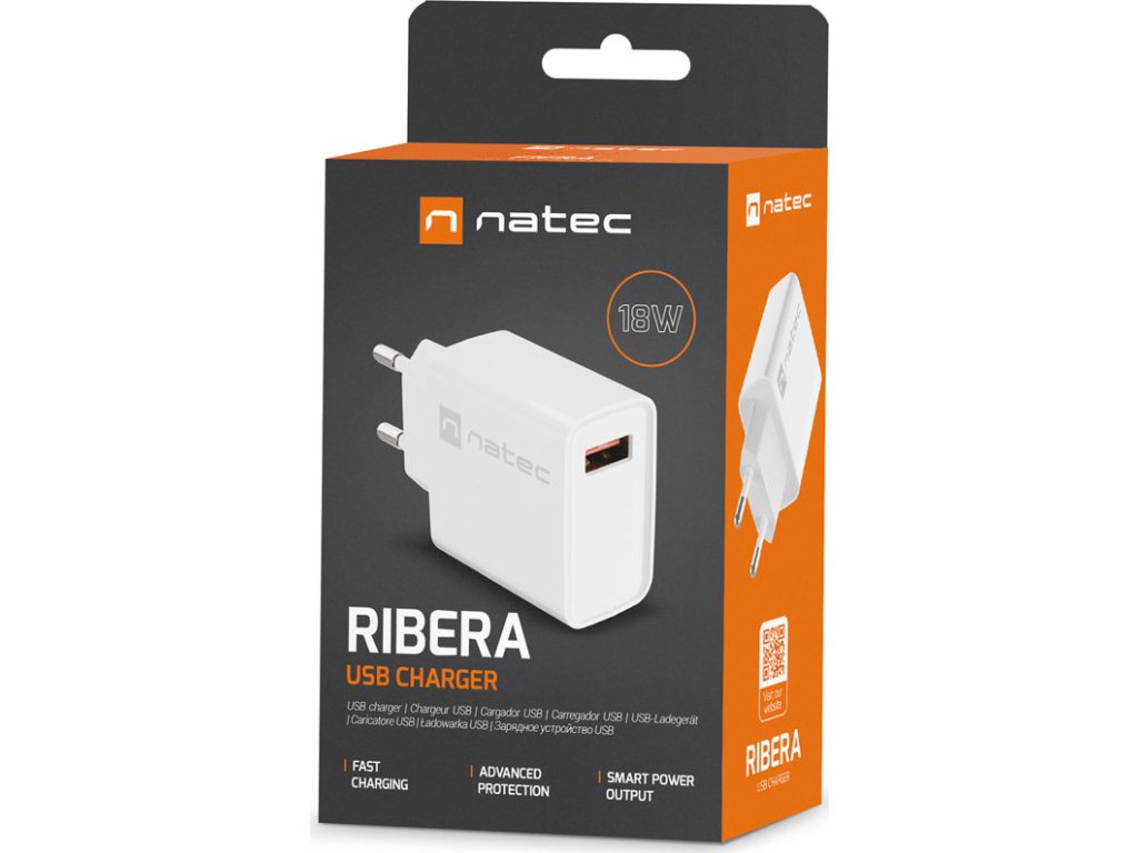 Universální nabíječka Natec RIBERA 18W 1X USB-A, bílá