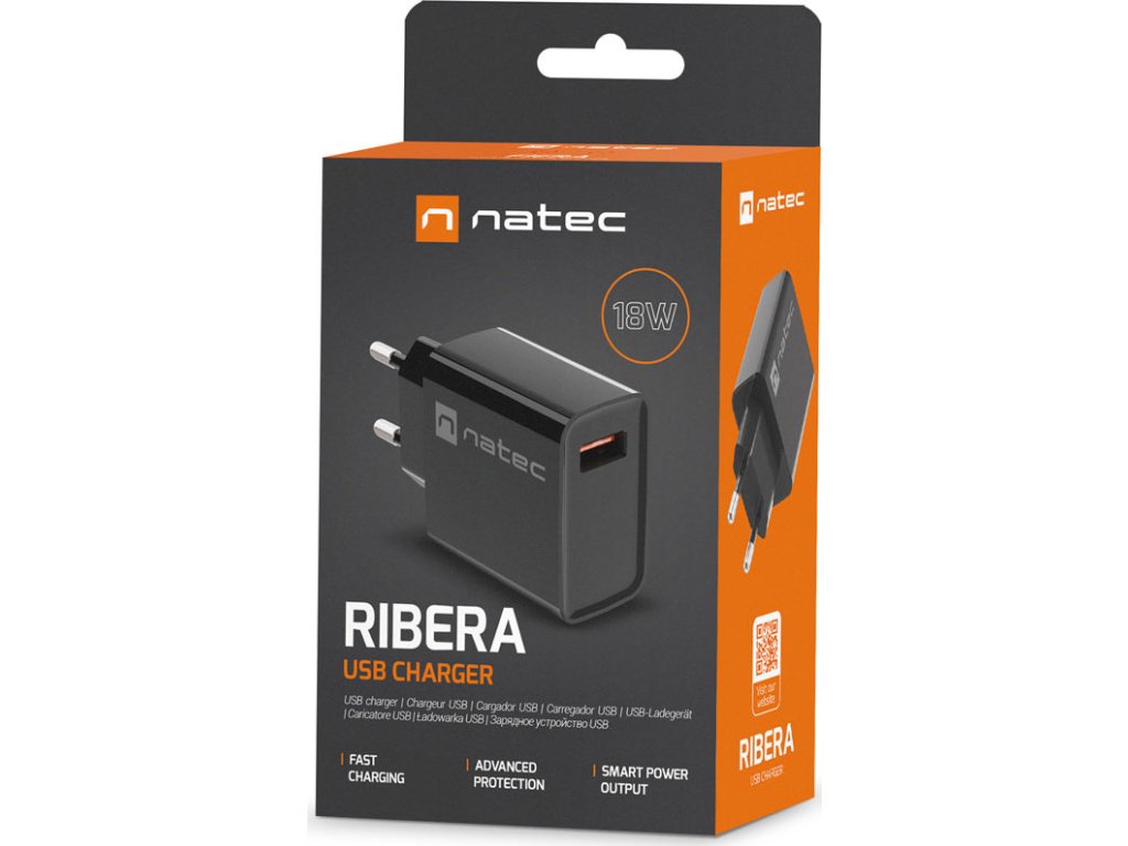 Universální nabíječka Natec RIBERA 18W 1X USB-A, černá