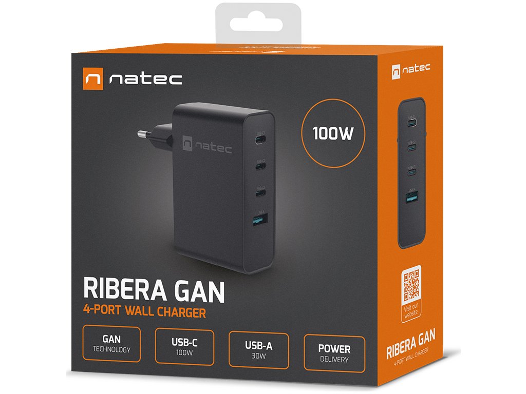 Okamžité nabíjení více zařízení s nižší spotřebou energie? Se zařízením Natec Ribera GaN s výkonem 100 W je to možné. Zde je nabíječka s více porty, která umožňuje nabíjet až 4 zařízení současně, včetně notebooků podporujících standard PD. Tato nabíječka je navržena na bázi nitridu galia (GaN), což se projevuje ve vyšší energetické účinnosti a menších celkových rozměrech. Je kompaktní, lehká a účinná - a dokáže nabíjet všechna zařízení, kterými se denně obklopujete. To je nabíječka Natec Ribera GaN.