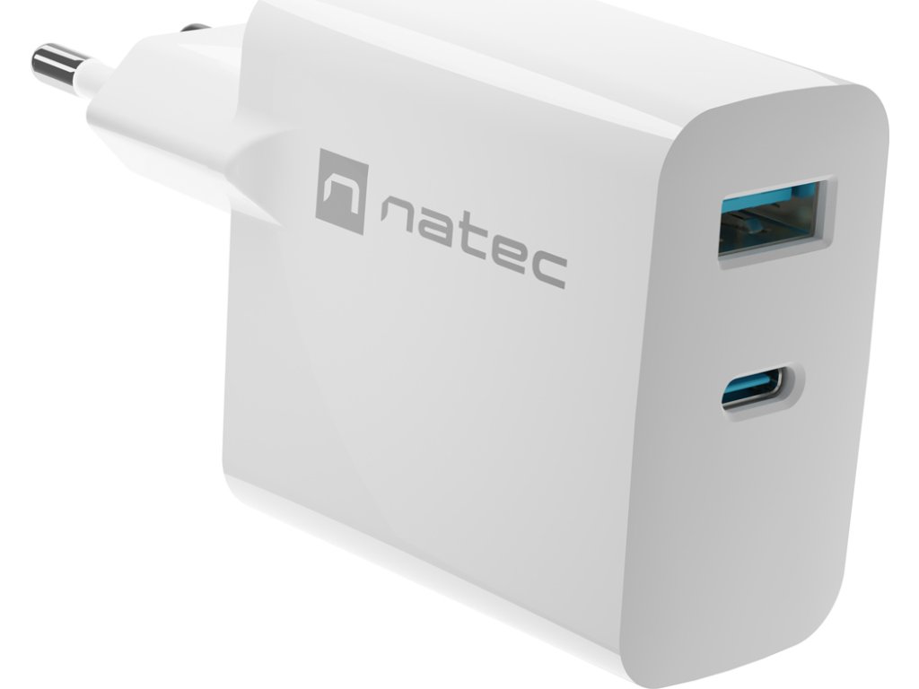 Univerzální USB nabíječka Natec RIBERA GaN 45W, 1X USB-A, 1X USB-C, bílá