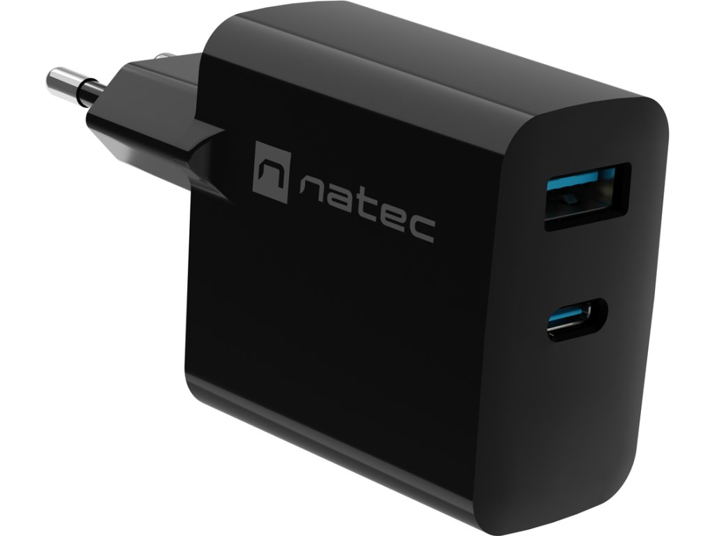 Univerzální USB nabíječka Natec RIBERA GaN 45W, 1X USB-A, 1X USB-C, černá