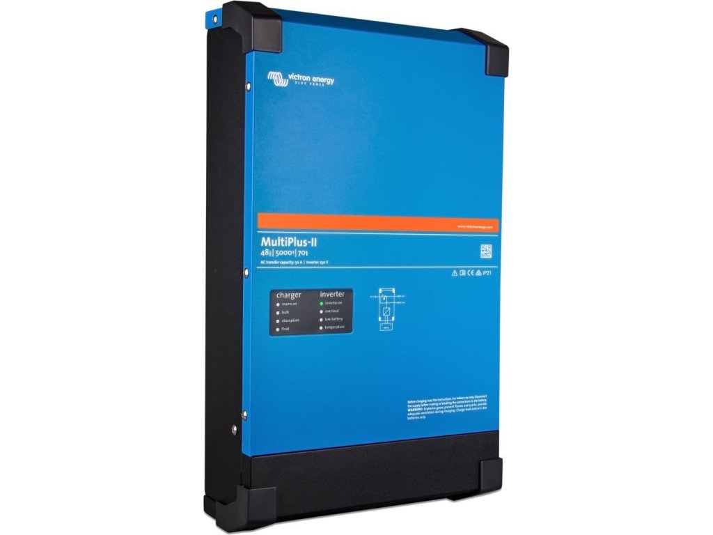 Victron MultiPlus-II 48V/5000VA/70A-50A (akce 2 + 1 zdarma)MultiPlus-II je výkonný DC-AC hybridní měnič/nabíječ s čistě sinusovým výstupem, integrovanou adaptivní nabíječkou baterií a ultra rychlým transferovým přepínačem zdroje napájení – baterie/zdroj (externí AC).