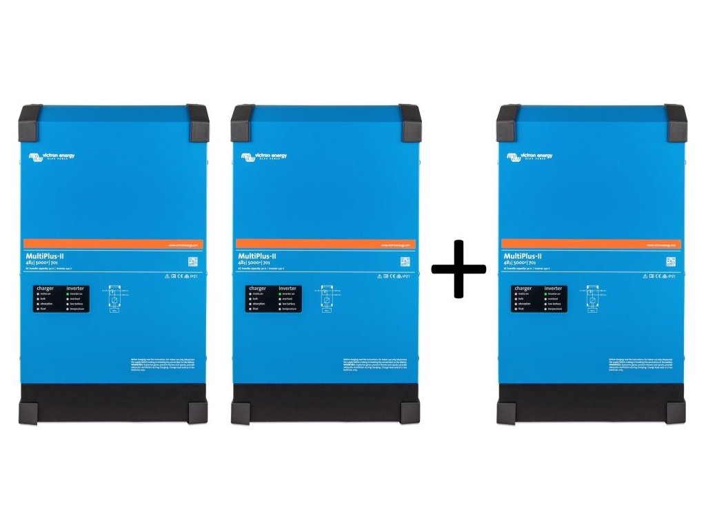 Až 6 jednotek MultiPlus-II může pracovat paralelně k dosažení vyššího výkonu. Např. šest jednotek 48/5000/70 poskytuje 25 kW (30 kVA) výstupní výkon a nabíjecí výkon 420 A.