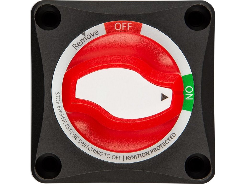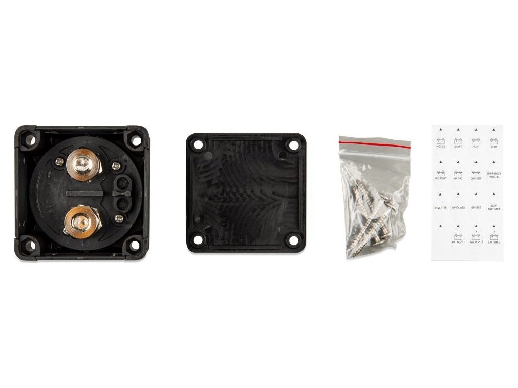 Victron Bateriový odpojovač 275 ABateriový odpojovač Battery Switch ON/OFF sloužící k odpojení plusového terminálu baterie od DC systému. Knoflík je odnímatelný z bezpečnostních důvodů nebo za účelem přidání izolace. Odpojovač splňuje normu ISO8846 (ochrana proti vznícení) a je vhodný pro použití v průmyslovém prostředí.