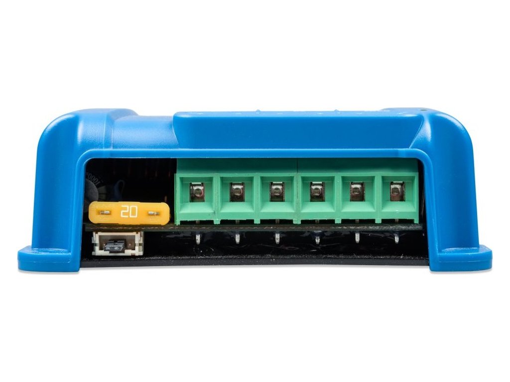 Tento externí BT adaptér přináší možnost propojení chytrého telefonu/tabletu (aplikace VictronConnect) se solárním regulátorem. Můžete monitorovat mnoho parametrů systému a historické statistiky za posledních 30 dnů. Dále máte možnost provádět nastavení provozních parametrů.