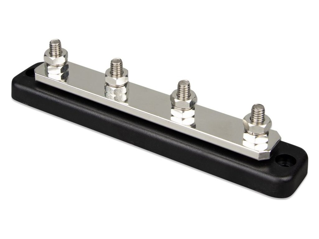 Victron DC přípojnice 250 A 4PDC přípojnice se používá pro distribuci vysokého DC proudu a současně také slouží jako připojení pro baterie a/nebo DC zařízení. Každá DC přípojnice je vybavena odnímatelným ochranným krytem.