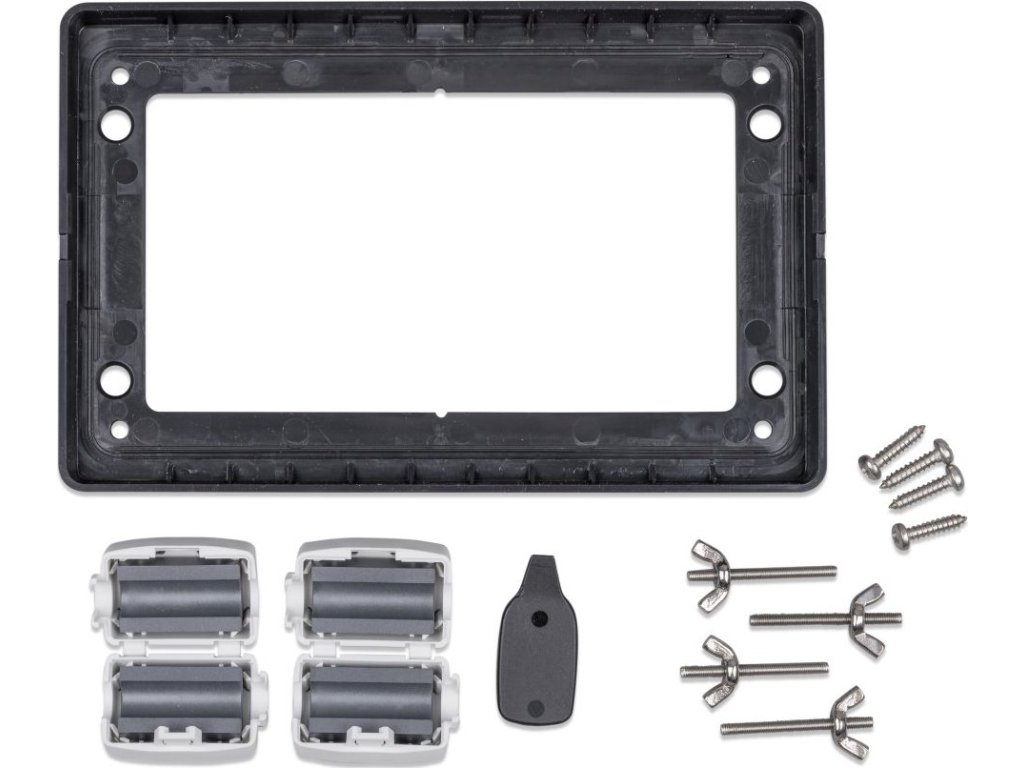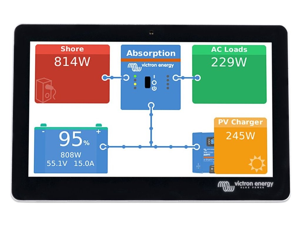 Dotykový displej GX Touch je optimalizován tak, aby splňoval standardy odborníků provádějících instalaci. Displej lze přišroubovat přímo na palubní desku, takže není zapotřebí vyřezávat vhodný otvor (jak tomu bylo u zařízení Color Control GX). Připojuje se pouze jedním kabelem, což znamená, že už nemusíte táhnout k palubní desce více kabelů.