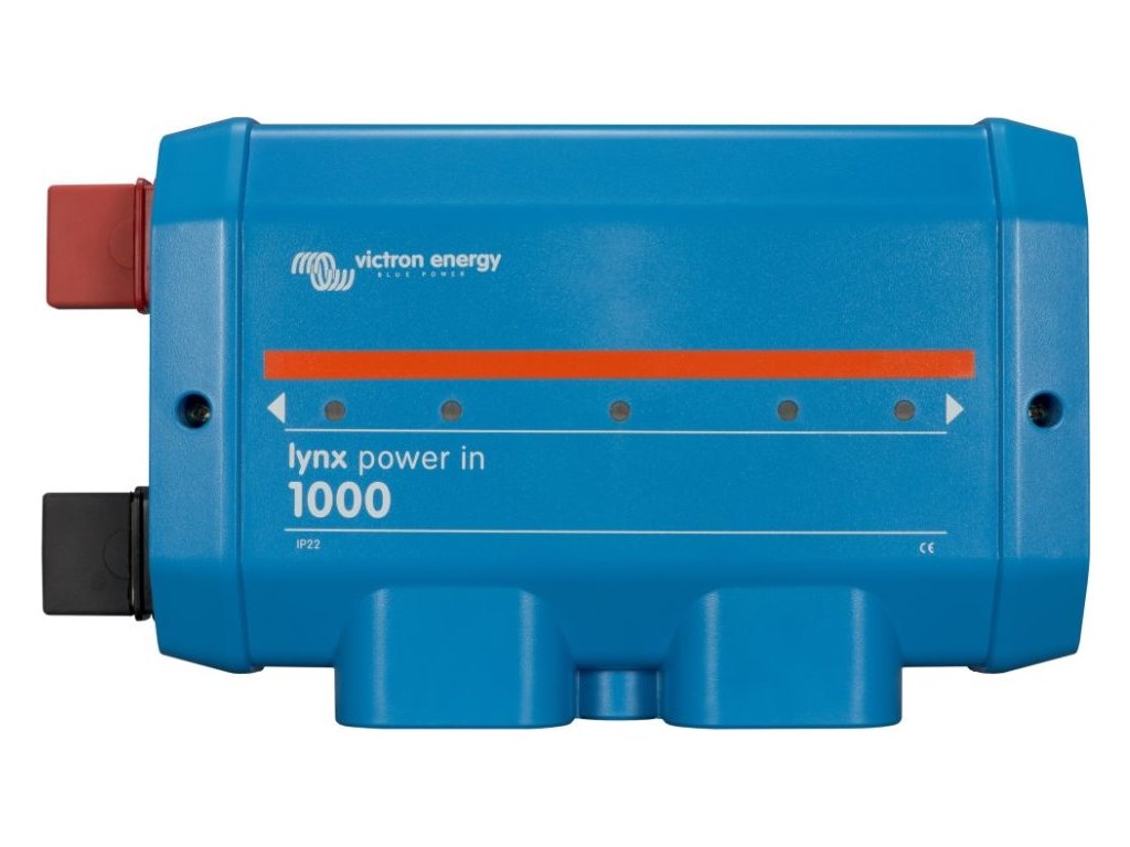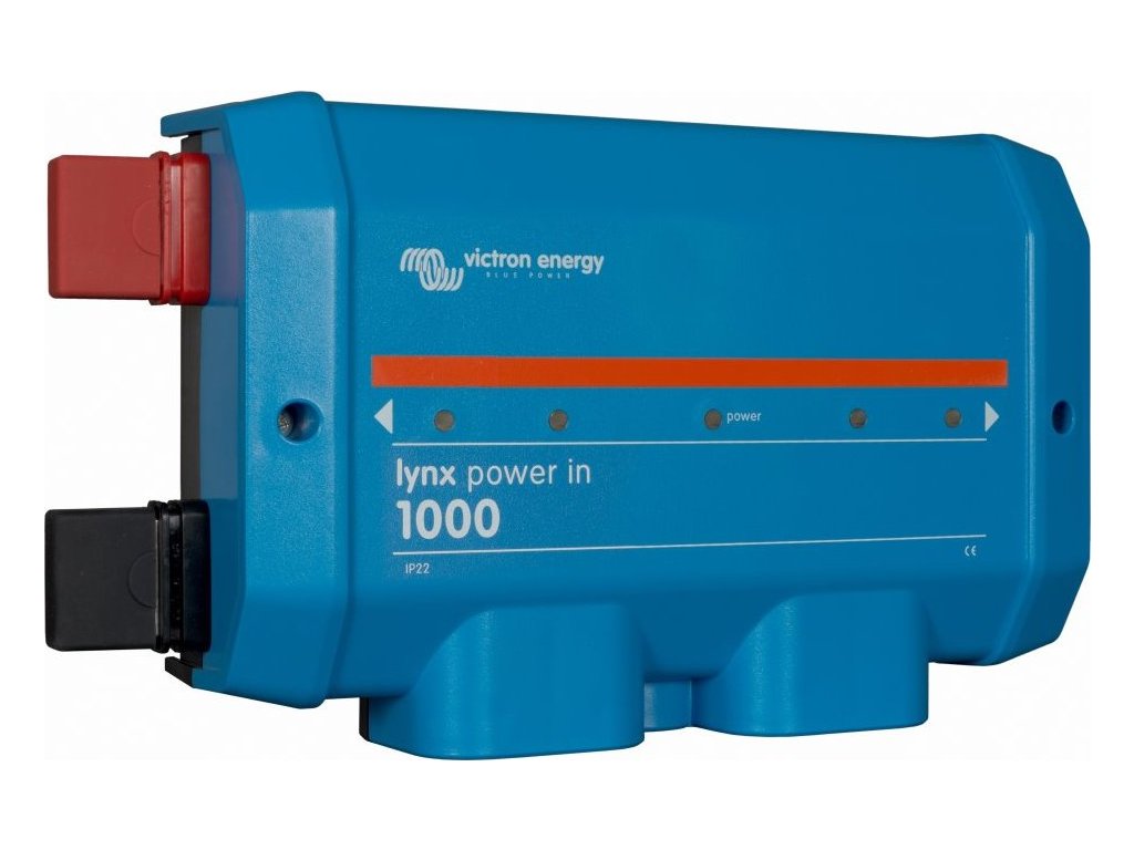 Modul Lynx Power In obsahuje zápornou a kladnou přípojnici se šrouby M8, které slouží k připojení kabelů baterií. Mohou být použity kabely až do průměru 22 mm skrz spodní vstupy a bez omezení přes obě boční připojení.