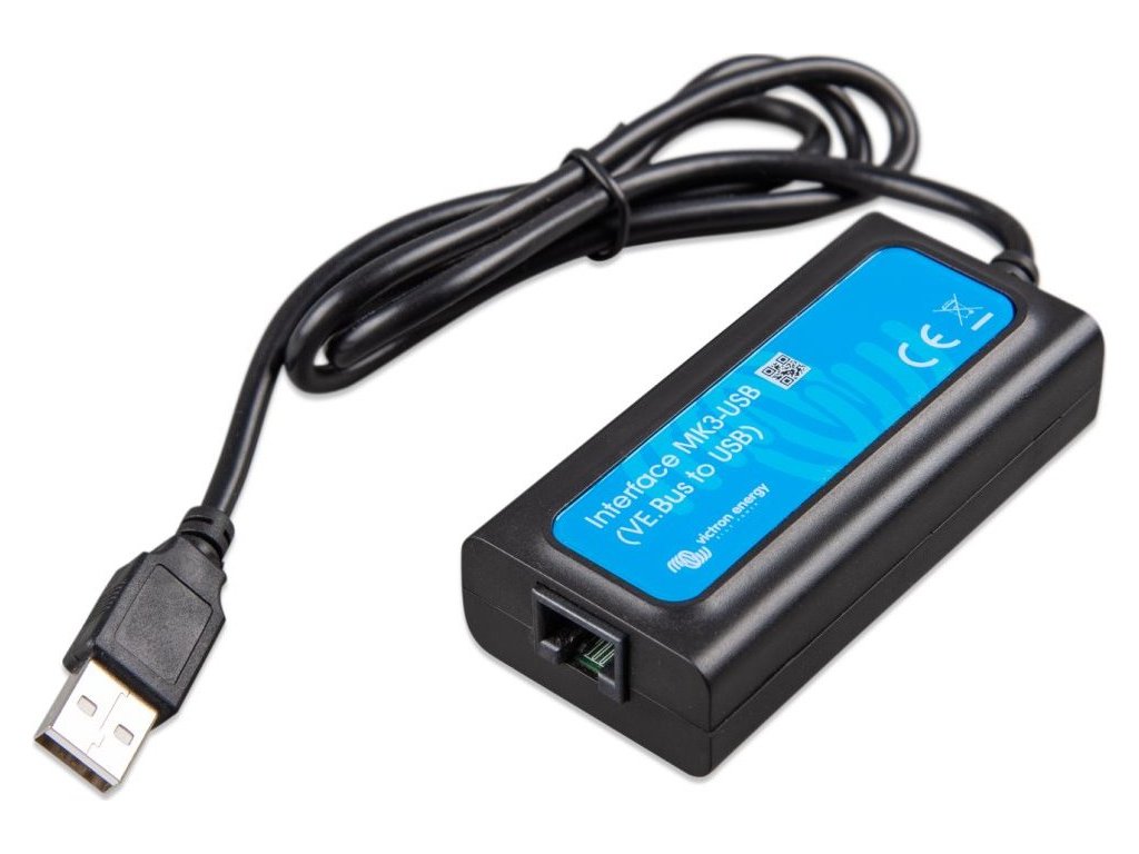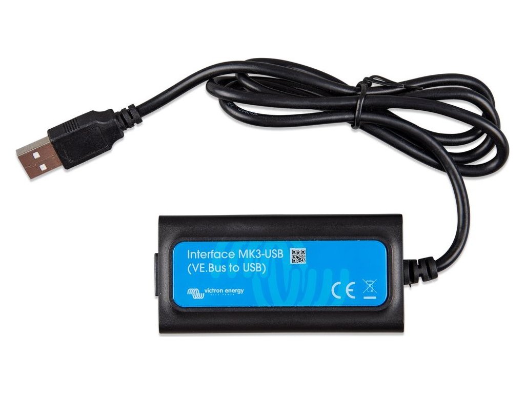Victron MK3-USBPočítačové rozhraní MK3-USB slouží k softwarovému nastavení měničů řady Phoenix a měničů/nabíječek řady MultiPlus a Quattro. Všechna tato zařízení mají standardní nastavení z výroby. Pro změnu standardního nastavení slouží toto rozhraní. Lze měnit parametry jako hodnoty napětí pro odpojení a opětovné připojení zátěže, charakter nabíjecího napětí, charakter připojování k síti v závislosti na napětí akumulátorů nebo odběru a mnoho dalšího. Nastavovací software VE Configure je zdarma ke stažení. Lze si ho vyzkoušet i bez tohoto rozhraní a nastavovaného zařízení. Jedná se o volitelné zařízení, které není pro chod nastavovaných zařízení bezpodmínečně nutné.