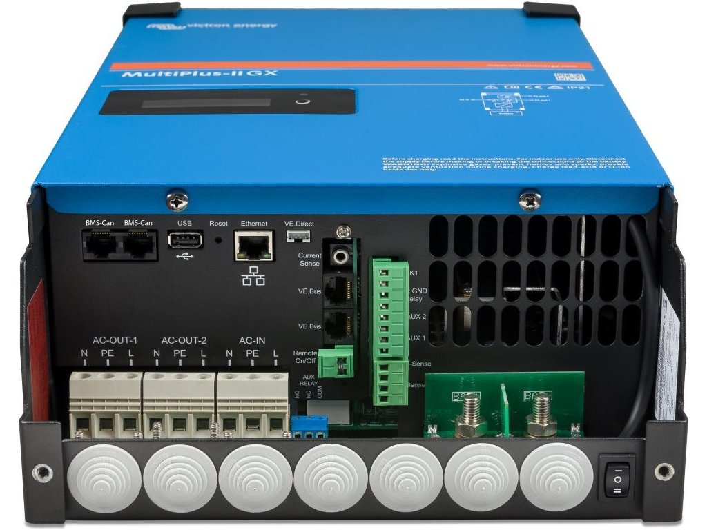 MultiPlus-II GX, jak název napovídá, je kombinací střídače a nabíječky v jednom elegantním provedení. Jeho řada funkcí zahrnuje čistě sinusový měnič, adaptivní nabíjení, hybridní technologii PowerAssist a další funkce pro integrace do různých typů systémů.