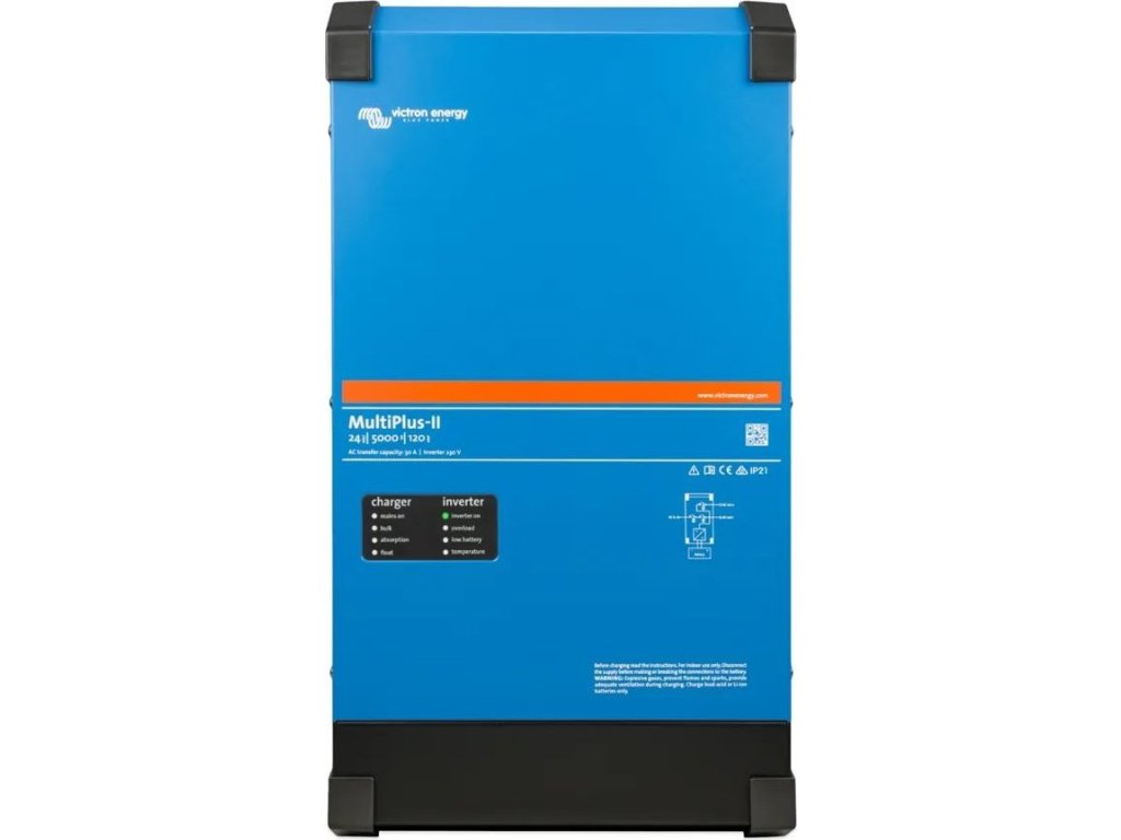 Victron MultiPlus-II 24V/5000VA/120A-50AMultiPlus-II je výkonný DC-AC hybridní měnič/nabíječ s čistě sinusovým výstupem, integrovanou adaptivní nabíječkou baterií a ultra rychlým transferovým přepínačem zdroje napájení - baterie/zdroj (externí AC).