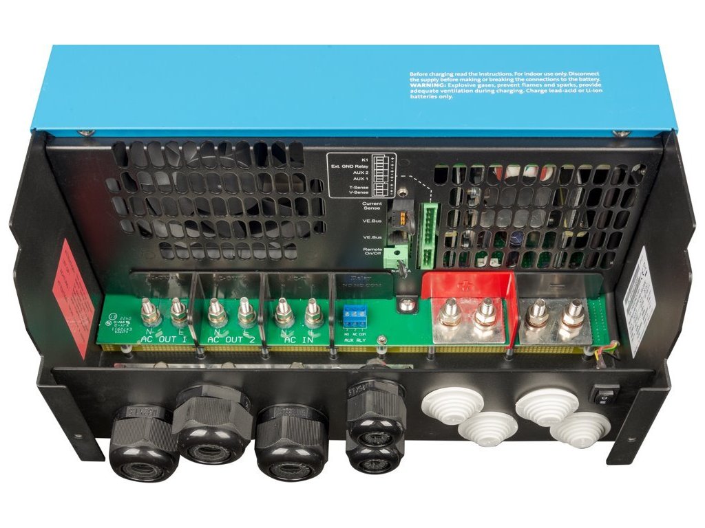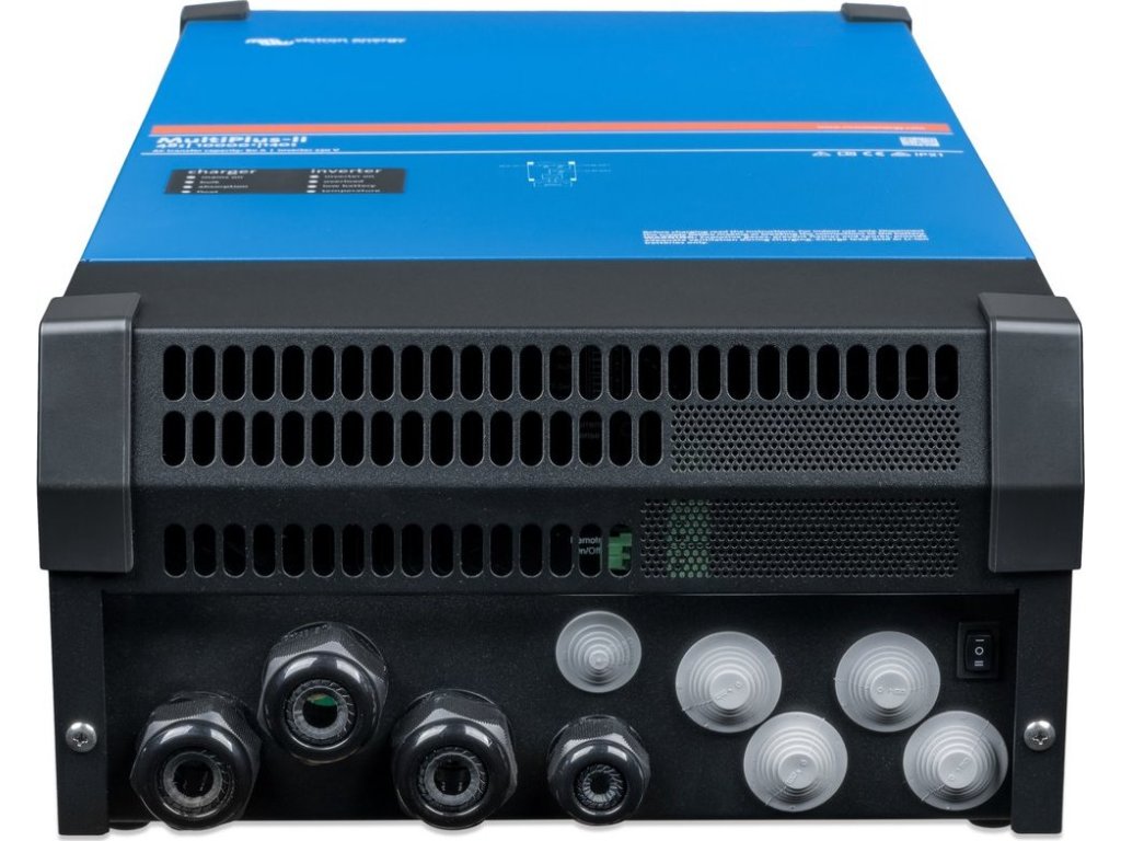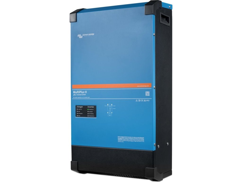 MultiPlus-II je výkonný DC-AC hybridní měnič/nabíječ s čistě sinusovým výstupem, integrovanou adaptivní nabíječkou baterií a ultra rychlým transferovým přepínačem zdroje napájení - baterie/zdroj (externí AC).