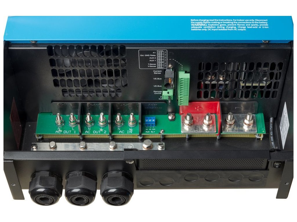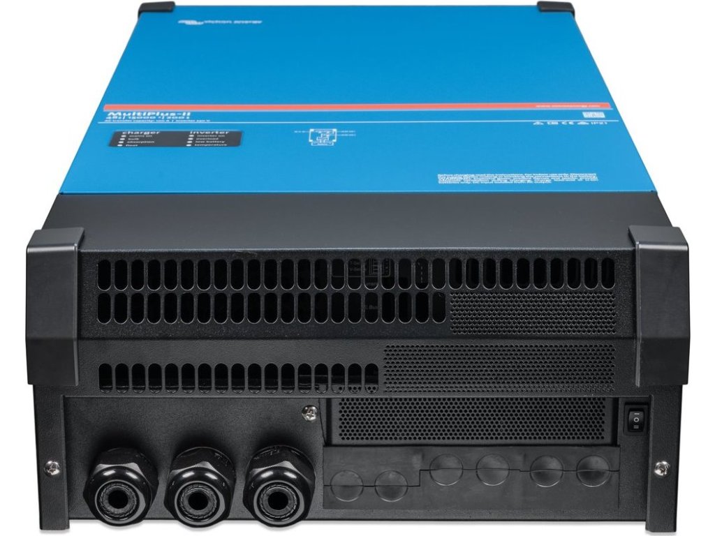 MultiPlus-II je výkonný DC-AC hybridní měnič/nabíječ s čistě sinusovým výstupem, integrovanou adaptivní nabíječkou baterií a ultra rychlým transferovým přepínačem zdroje napájení - baterie/zdroj (externí AC).