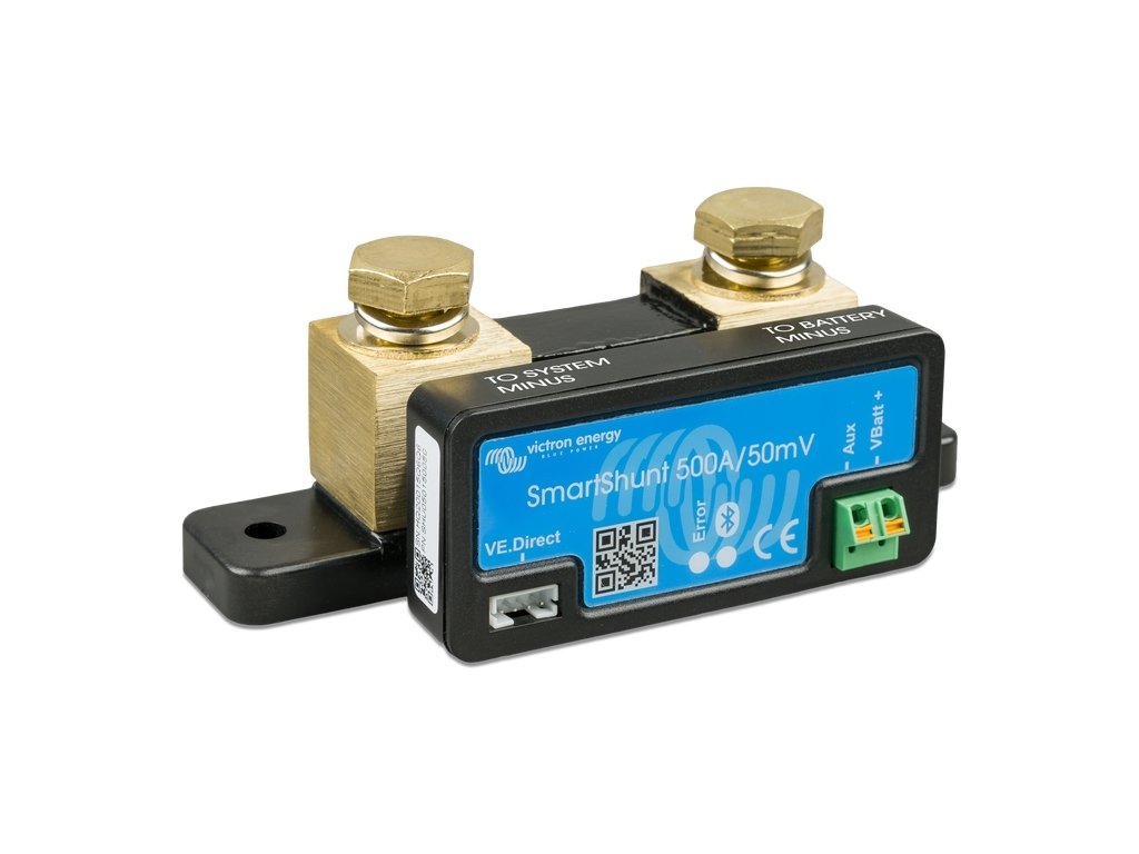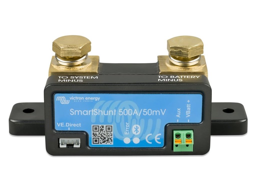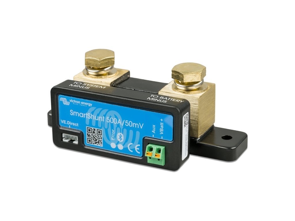 SmartShunt je monitor baterie stejně jako řada BMV (pouze bez displeje). Displejem se stává váš chytrý telefon s aplikací VictronConnect. Zařízení se připojuje přes Bluetooth k aplikaci VictronConnect v chytrém telefonu (nebo tabletu) a pohodlně si můžete přečíst všechny sledované parametry baterie. Alternativně může být SmartShunt připojen a čten zařízením GX. Připojení k SmartShunt se provádí pomocí kabelu VE.Direct. SmartShunt je dobrou alternativou k monitoru baterií BMV, zejména pro systémy, kde je zapotřebí monitorování baterií, ale vyžaduje se méně kabeláže a není požadován klasický displej.