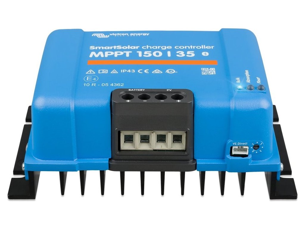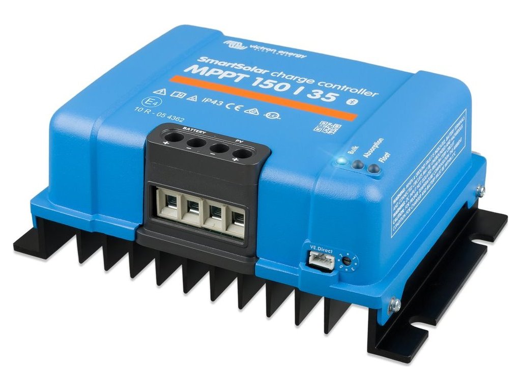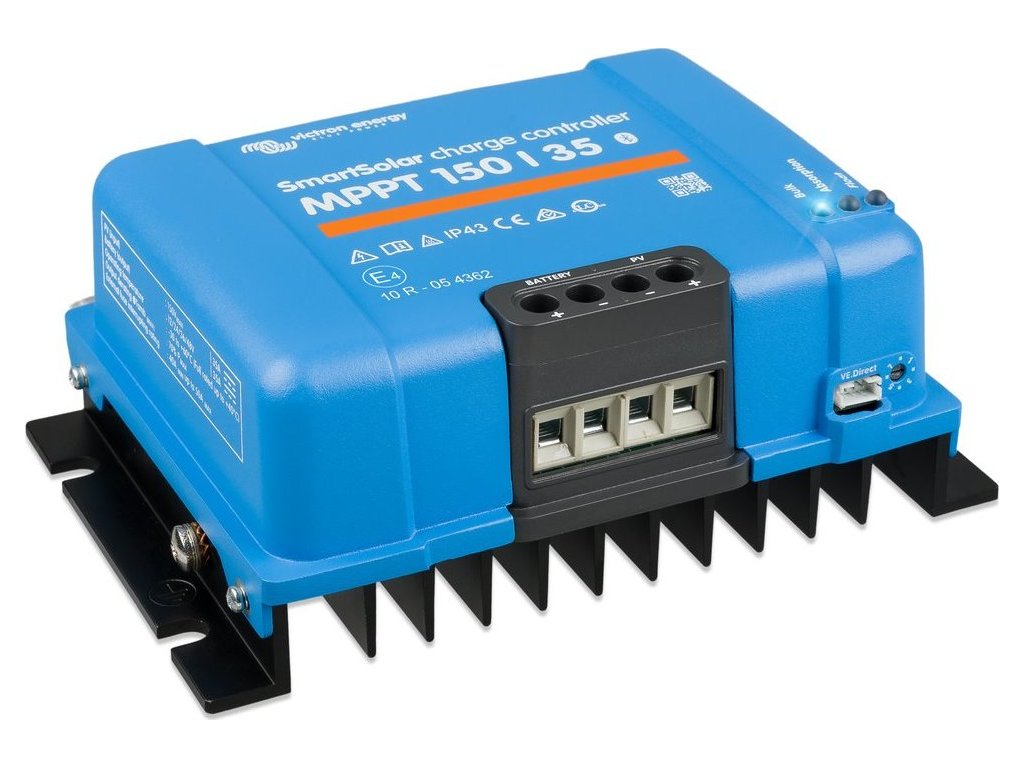 Victron SmartSolar 150/35 MPPTRobustní a rychlý MPPT regulátor pro náročné podmínky s napětím panelů až 150 V, maximální nabíjecí proud 35 A. Baterie 12/24/48 V, FV max. 500/1000/2000 Wp. Vestavěné Bluetooth a VE.direct rozhraní.