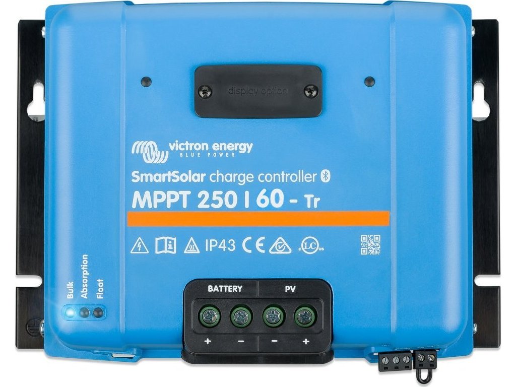 Victron SmartSolar 250/60-Tr MPPTRobustní a rychlý MPPT regulátor pro náročné podmínky s napětím panelů až 250 V, nabíjecí proud 60 A. Baterie 12/24/48 V, FV max. 860/1720/3440 Wp. Vestavěné Bluetooth a konektor pro zásuvný displej.