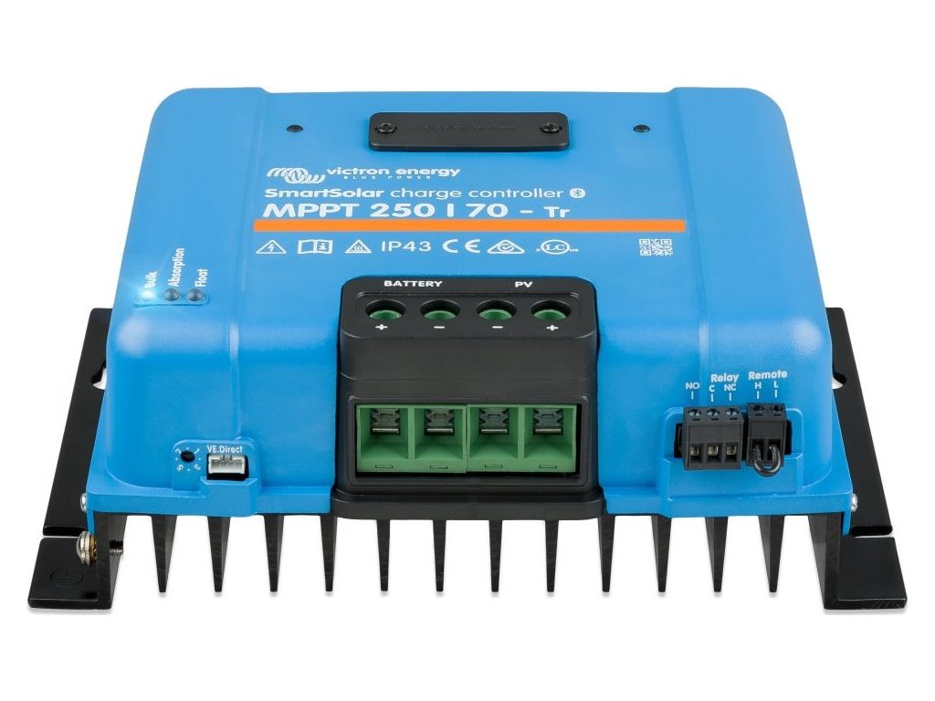 Victron SmartSolar 250/70-Tr MPPTRobustní a rychlý MPPT regulátor pro náročné podmínky s napětím panelů až 250 V, nabíjecí proud 70 A. Baterie 12/24/48 V, FV max. 1000/2000/4000 Wp. Vestavěné Bluetooth a konektor pro zásuvný displej.